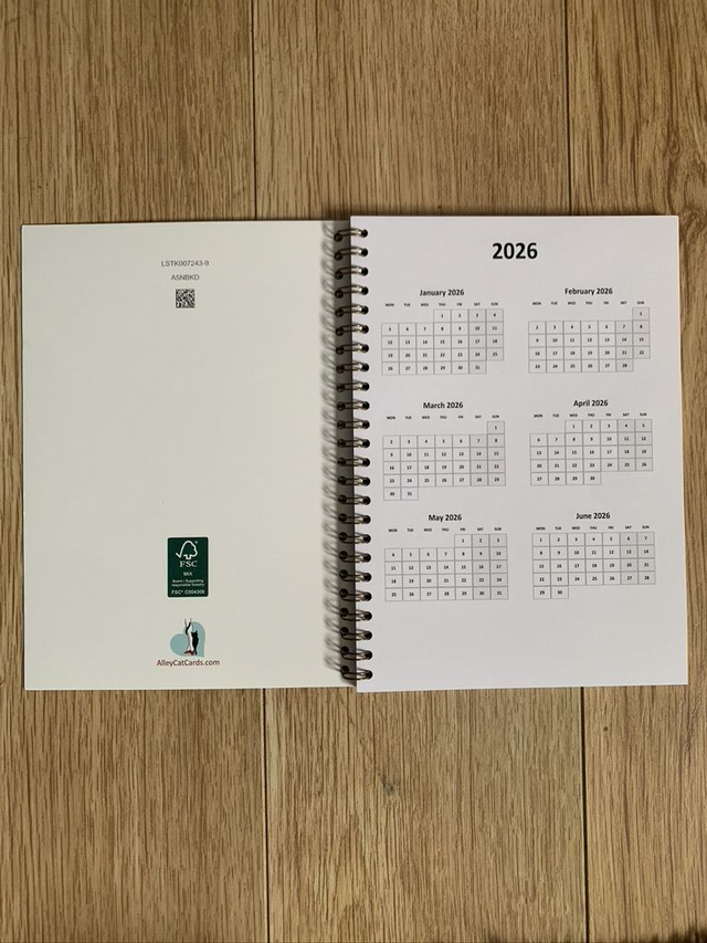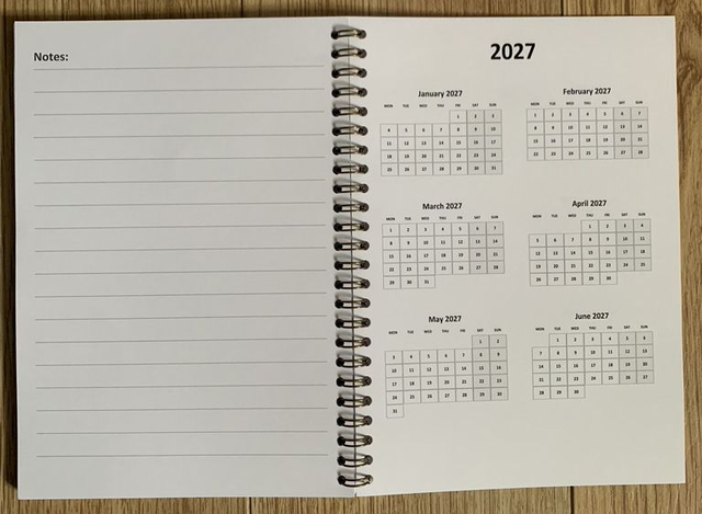 2026 A5 wire bound diary with week per page. 345gsm cover and 170gsm pages