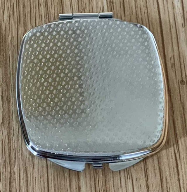Metal framed compact handbag / pocket mirror with two mirrors inside and hedgehog design on front. Approx 6.5 x 7.25 x 0.75cm. Lovely gift for a hedgehog lover!