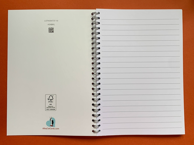 60 page wire bound notebook with ruled lines on alternate pages. 345gsm cover and 170gsm pages.
